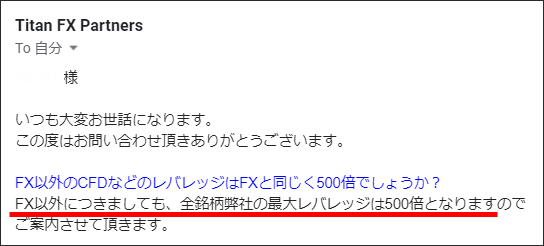 レバレッジ制限になる数日前に、TitanFXからレバレッジ制限の倍率と通貨ペアの連絡が来るので、事前に確認しておくようにしましょう。